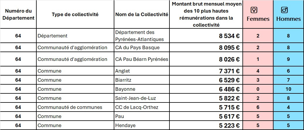 Nous avons regardé plus précisément la situation du Conseil départemental 64 par rapport aux 10 collectivités concernées dans le département et nous constatons que sur le département des Pyrénées-Atlantiques est championne départementale.